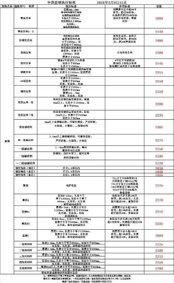 *月**日上午*點(diǎn),內(nèi)蒙古中唐特鋼廢鋼采購(gòu)價(jià)格所有料型含稅降**元/噸。