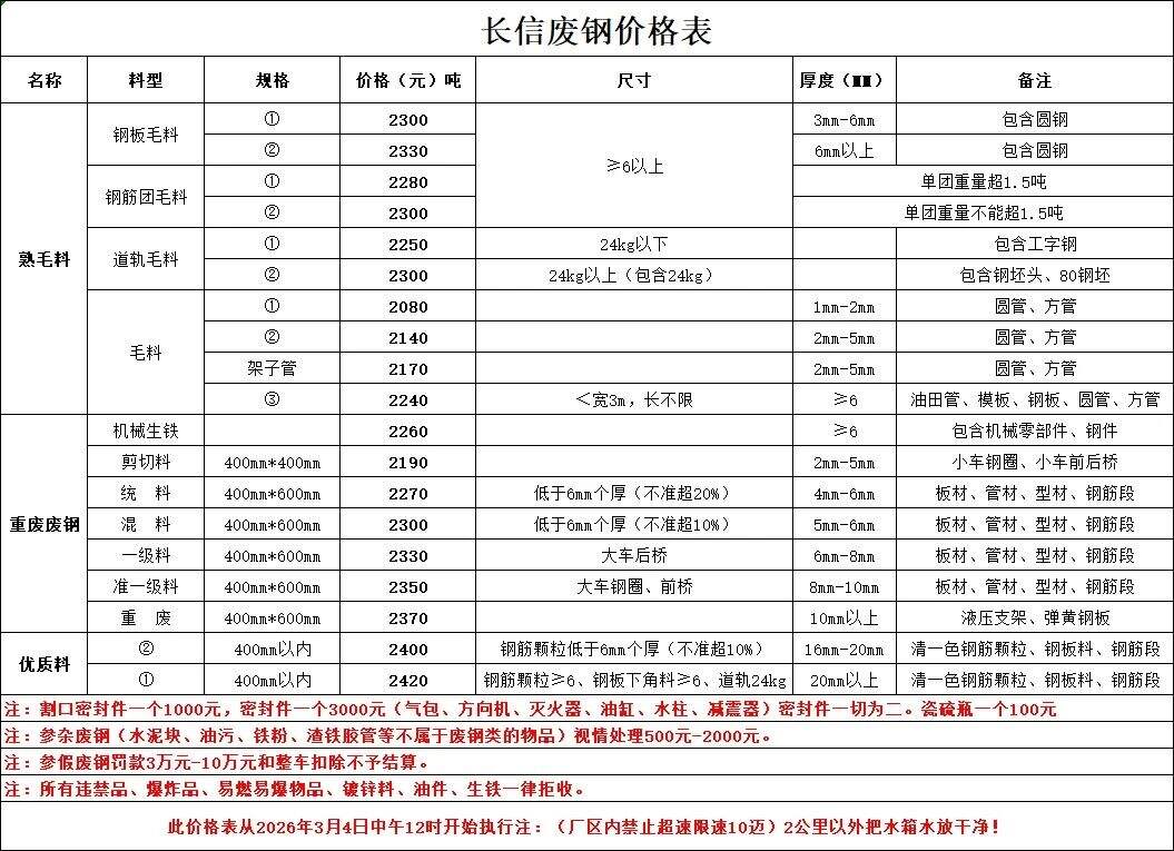 山西長治金燁鋼鐵廢鋼所有料型上漲**元/噸。