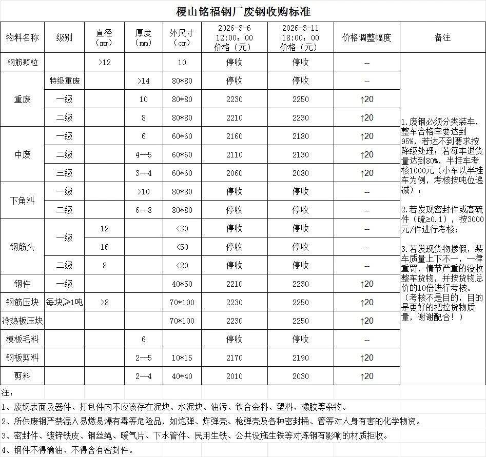 *日山西銘福廢鋼漲**。特級重廢停收,一級重廢****,二級重廢****,一級中廢****,二級中廢****。三級中廢****,鋼件****鋼筋頭一級停收,鋼筋頭二級停收,鋼筋壓塊停收