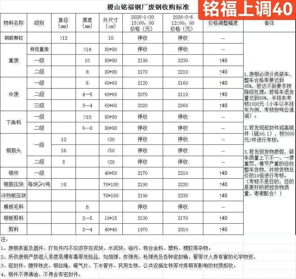 重廢二級停收,重廢三級停收,鋼筋頭一級停收,鋼筋頭二級停收;邊角料一級****