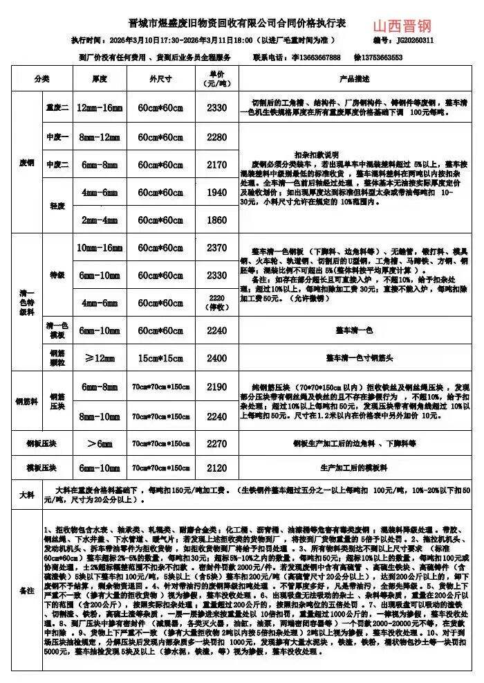*月**日山西晉鋼廢鋼執(zhí)行價:
